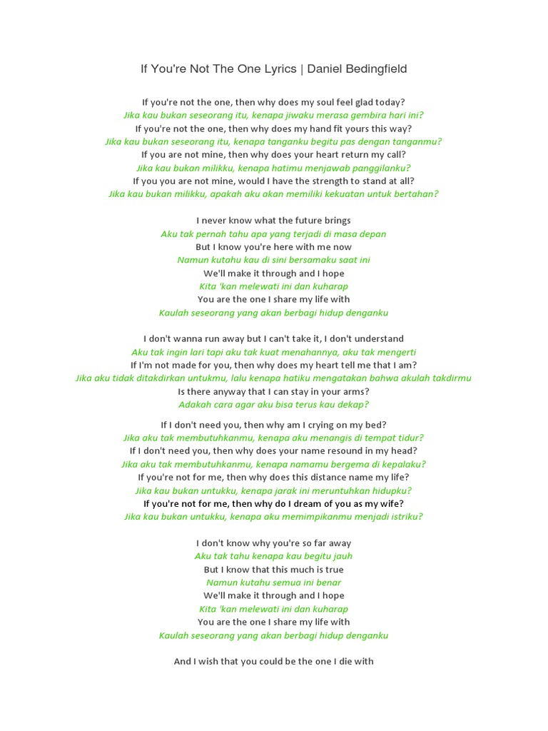 Daniel Bedingfield If You Re Not The One Lyrics Terjemahan