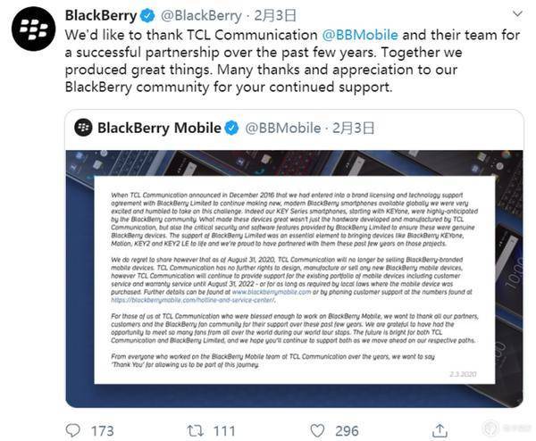 手机中国联盟官博 黑莓手机将彻底退出历史舞台tcl今年 微博精选手机版 微博新加坡sg