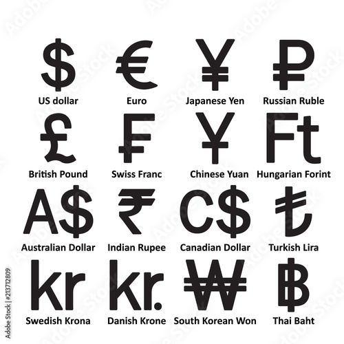 Currencies Symbol Icons Set Dollar Euro Ruble Yuan Yen Lira Swiss Franc Indian Rupee And British Pound And Others Vector Buy This Stock Vector And Explore Similar Vectors At Adobe Stock