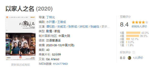 以家人之名 开播 这部剧英文名为啥叫 Go Ahead